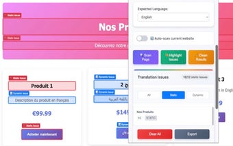 TranslateMe, çok dilli web uygulamalarında çeviri sorunlarını hızlı ve etkili bir şekilde tespit etmek için yapay zeka destekli bir analiz sunan bir Chrome eklentisidir. Geliştiriciler ve kalite kontrol ekipleri için tasarlanmış olan bu araç, web sitelerini tarayarak çeviri tutarsızlıklarını otomatik olarak algılar. Kullanıcı dostu arayüzü sayesinde, kullanıcılar manuel veya otomatik tarama modlarını seçerek sitelerini test edebilirler. Detaylı raporlar, çeviri sorunlarının kapsamlı bir analizini sağlar ve çoklu dil desteği ile her dil kombinasyonu için çalışır.